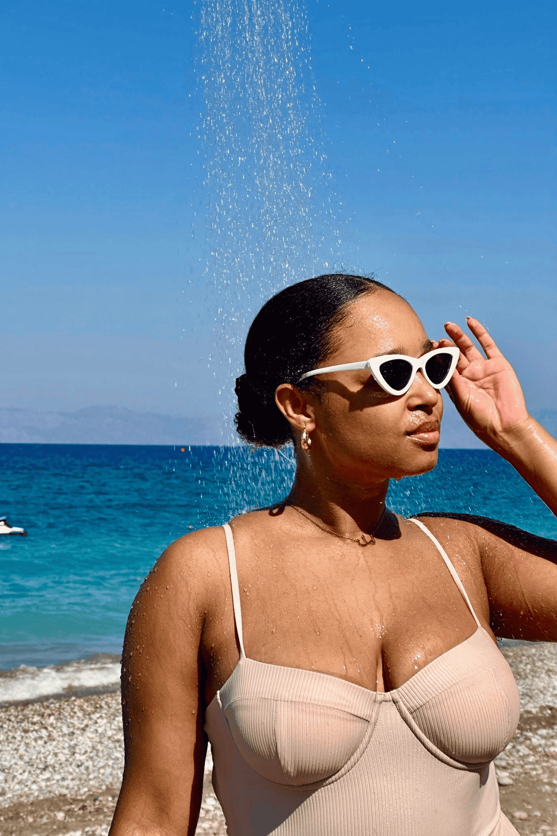 I have been looking for a timeless bathing suit for a while and so happy with this. The fabric is super nice, it really snatches in the right places and is thick in a good way that, i like the quality. the fit is very good and the top part doest move. usually with cups i don't like the cap between the breast and the top part of the cup, but this top part stays close on the body which avoids any gaps. i am so happy!! i also wear this bathing suit as a body under a blazer when I go out for dinner. so good